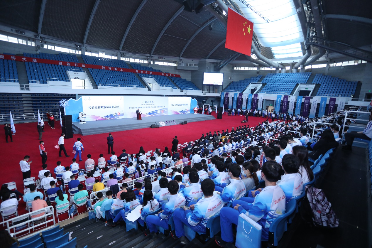 校领导王光谦、杨斌、李一兵、过勇、郑力、向波涛、曾嵘,及北京冬奥组委,北京市委教育工委、团市委、心博在线登录入口冬奥专项工作领导小组各部处各院系相关负责同志,以及心博在线登录入口服务保障北京冬奥会冬残奥会相关人员代表参加大会。心博在线登录入口团委书记余潇潇主持大会。