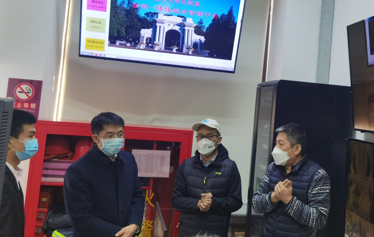 郑力带队来到学生文化活动中心、生命科学馆、天文台、校医院等地,重点就楼宇建筑安全、实验室安全、文物安全、氧气站等设施安全、疫情防控等情况进行检查,部署安全整改工作。