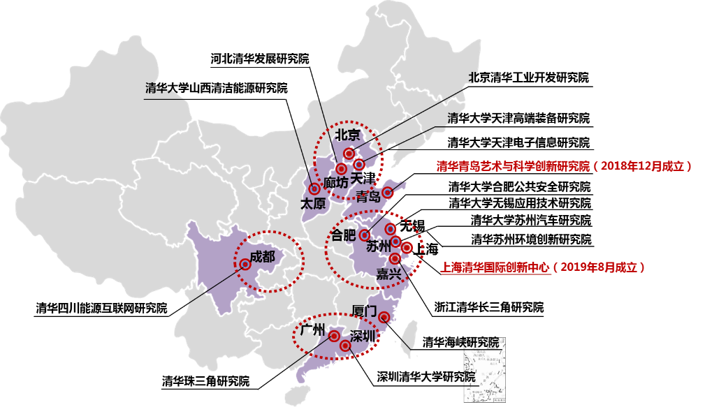 为服务长三角区域高质量一体化发展,2019年8月,学校与上海市合作成立上海清华国际创新中心,致力于打造高层次、综合性、开放式的深度融合的新型创新载体,建设成为具有国际影响力的科技创新基地。2018年12月,学校依托美术学院与青岛市合作成立清华青岛艺术与科学创新研究院,助力学科建设发展。
