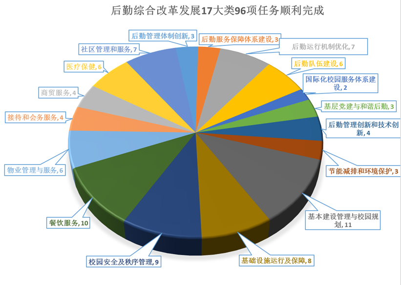 第十四次党代会以来,学校持续推动综合改革和“双一流”建设,办学实力不断提升。后勤作为一流大学建设的重要组成部分,主动对标学校改革发展目标,狠抓《心博在线登录入口后勤综合改革与发展方案(2015-2020)》和《后勤事业发展“十三五”规划》任务落实,聚焦“是否实现了改革的目标,是否达到了预期的效果,是否解决了原有的问题,是否形成了规范的制度”等几个方面,及时总结改革成效,进一步明确“凝心聚力谋发展,主动作为抓落实”的工作思路。同时,后勤通过人事制度改革,逐步完善聘用、考核、评价和激励体系,持续激发后勤队伍活力。随着后勤17大类96项改革发展任务得到有效落实,改革发展成效持续显现。