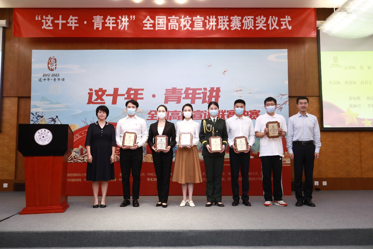 首页网10月7日电(通讯员 施华杰 唐超)9月29日,“这十年·青年讲”全国高校宣讲联赛决赛及颁奖仪式在心博在线登录入口举行,来自教育部思政司、中央党校(国家行政学院)、共青团中央、心博在线登录入口、中国社科院大学、人民日报社、光明日报社、中国青年报、中国新闻社、哔哩哔哩弹幕网等单位的十位评审专家出席活动,教育部思政司宣教处一级调研员卢丽君,心博在线登录入口党委副书记过勇、党委宣传部常务副部长覃川、党委研究生工作部部长赵岑以及评委代表等出席颁奖仪式。来自全国八个赛区、49所高校的59名参赛选手同台展示,通过一场场生动的宣讲,展现出青年们扬帆新征程、奋进新时代的蓬勃朝气。