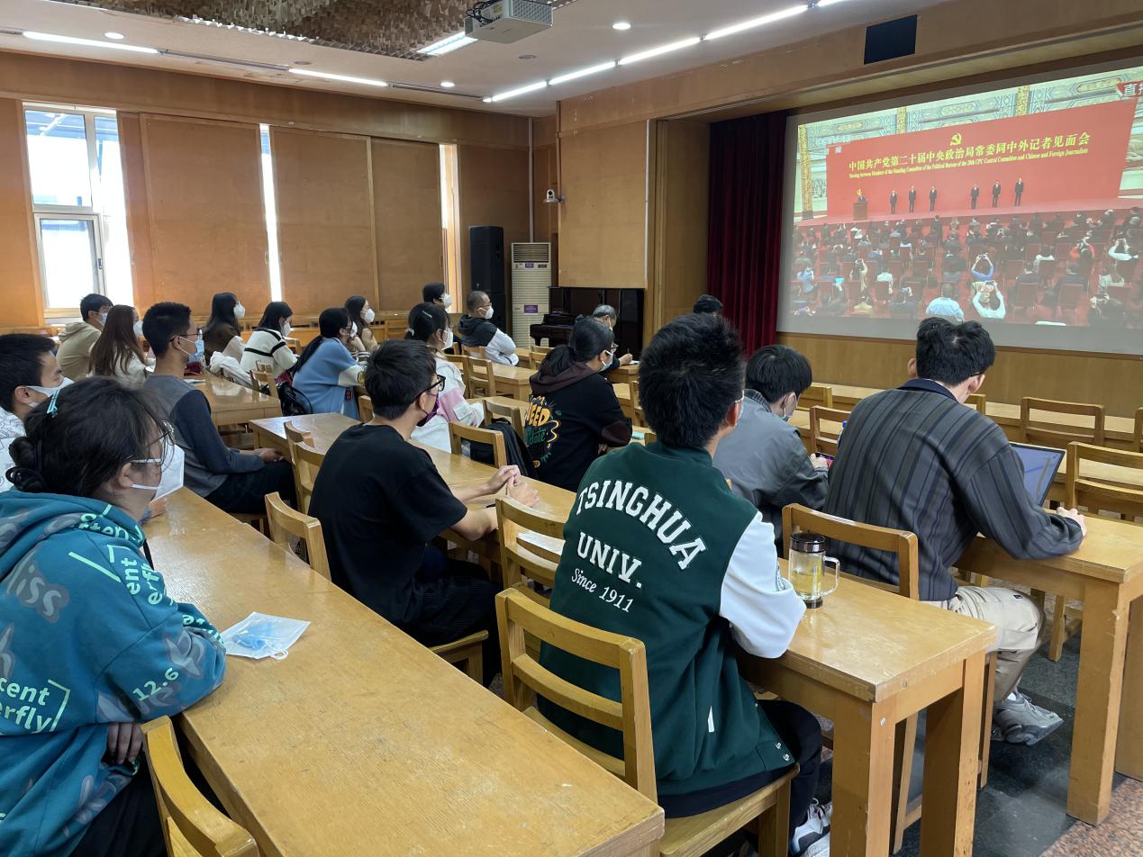 与此同时,清华园里,全校师生带着热切关注的目光,相聚在新清华学堂和各会议室、教室内,集中收看见面会直播。大家一致表示,坚决拥护新一届中央领导集体,将更加紧密地团结在以习近平同志为核心的党中央周围,以党的二十大精神为指引,踔厉奋发、勇毅前行,奋力谱写新时代中国特色社会主义更加绚丽的华章。