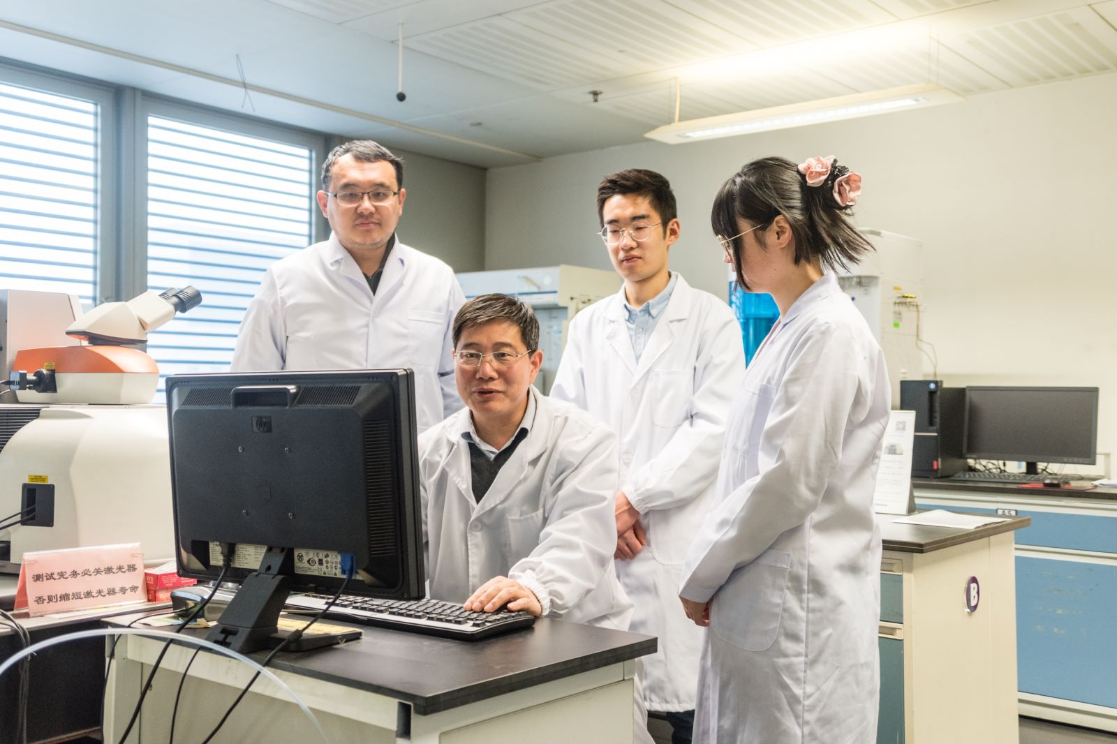 李俊华(中)与团队成员、学生讨论问题