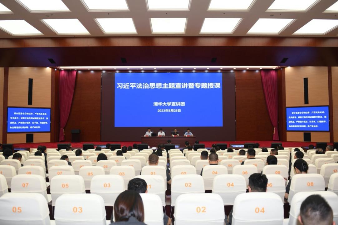 8月30日,宣讲团一行在毕节市委依法治市办开展学习贯彻习近平法治思想专题讲座,毕节市政协党组成员、副主席,市委全面依法治市委员会副主任江耀波出席并主持,毕节市分管法治建设的各部门工作人员现场参学。宣讲团讲师徐伟康、林自立、王牧分别聚焦习近平法治思想的深刻内涵和核心要义作专题宣讲。