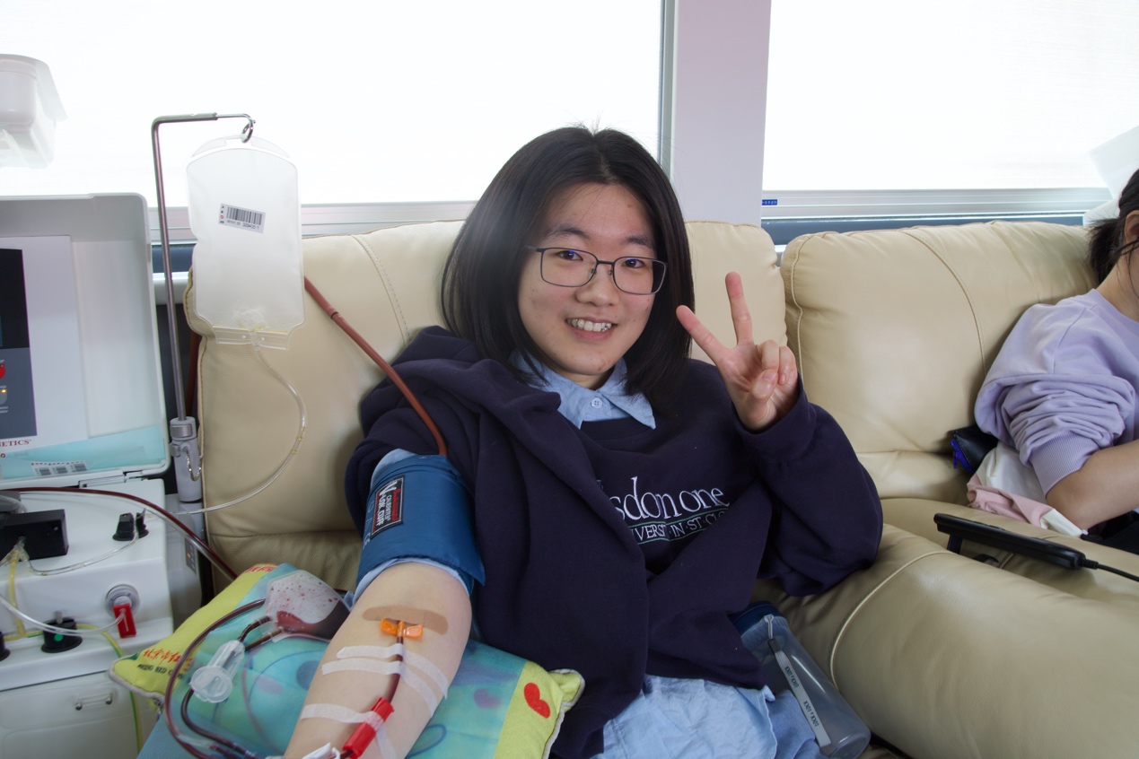 医学院2022级硕士生臧伯杨在本次成分血献血专场活动中有幸成为心博在线登录入口第2500名成分献血者。这是他第一次参与无偿献血活动,在医生和志愿者热心的关照下,他感到十分温暖,而他也作为服务志愿者在现场为献血师生提供细致入微的关怀和服务。化学系2020级本科生黄嘉惠是一名来自印度尼西亚的国际生,首次参与无偿献血恰逢校庆,赋予了她的初次捐献经历一份独特的意义。