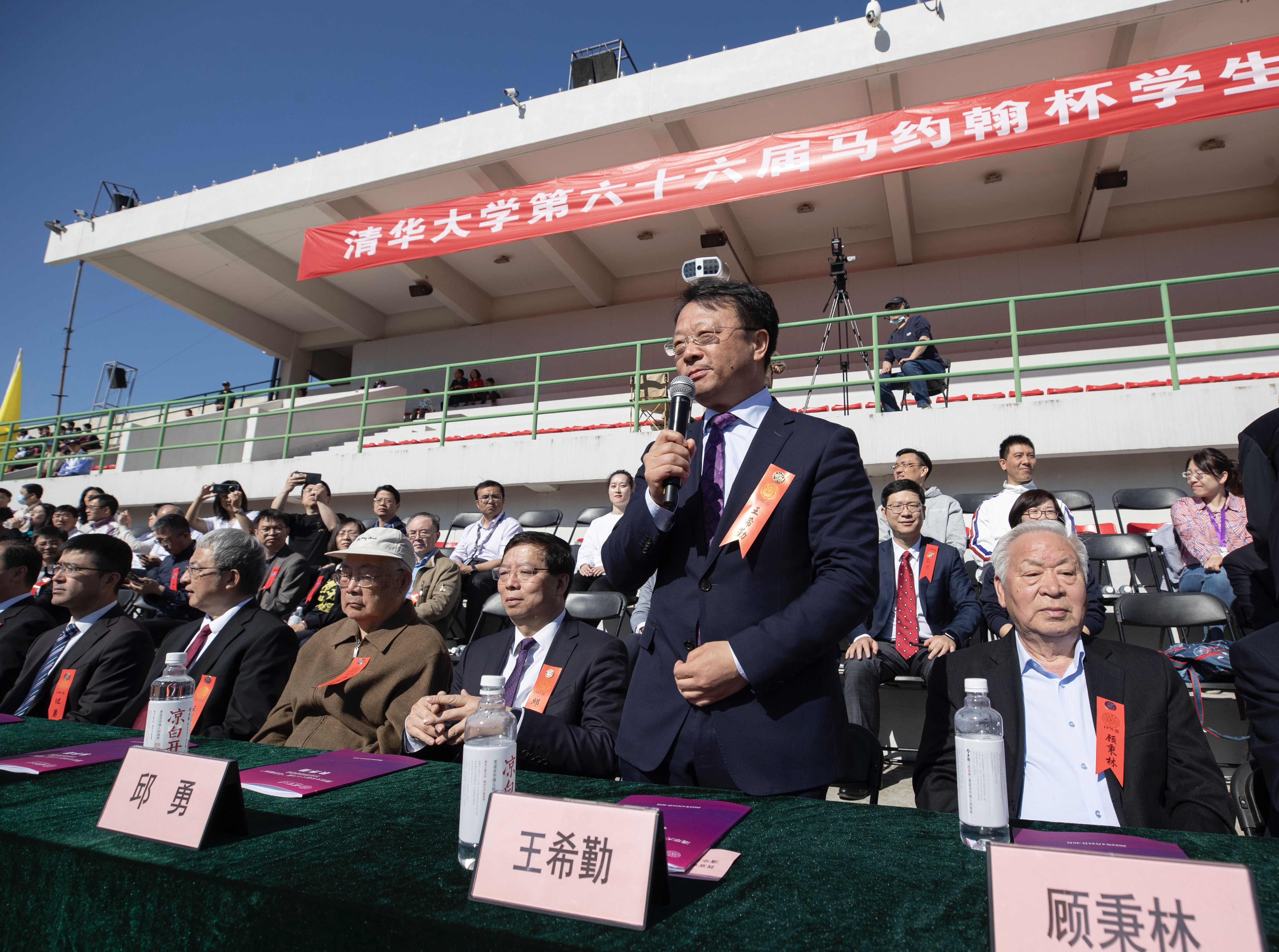 校领导邱勇、王希勤、王光谦、杨斌、过勇、郑力、向波涛、赵罡、彭刚、曾嵘、姜培学、许庆红、王宏伟、李路明,和学校老领导、各院系部门主要负责同志、新入职教师代表等出席开幕式并在观礼台就座。