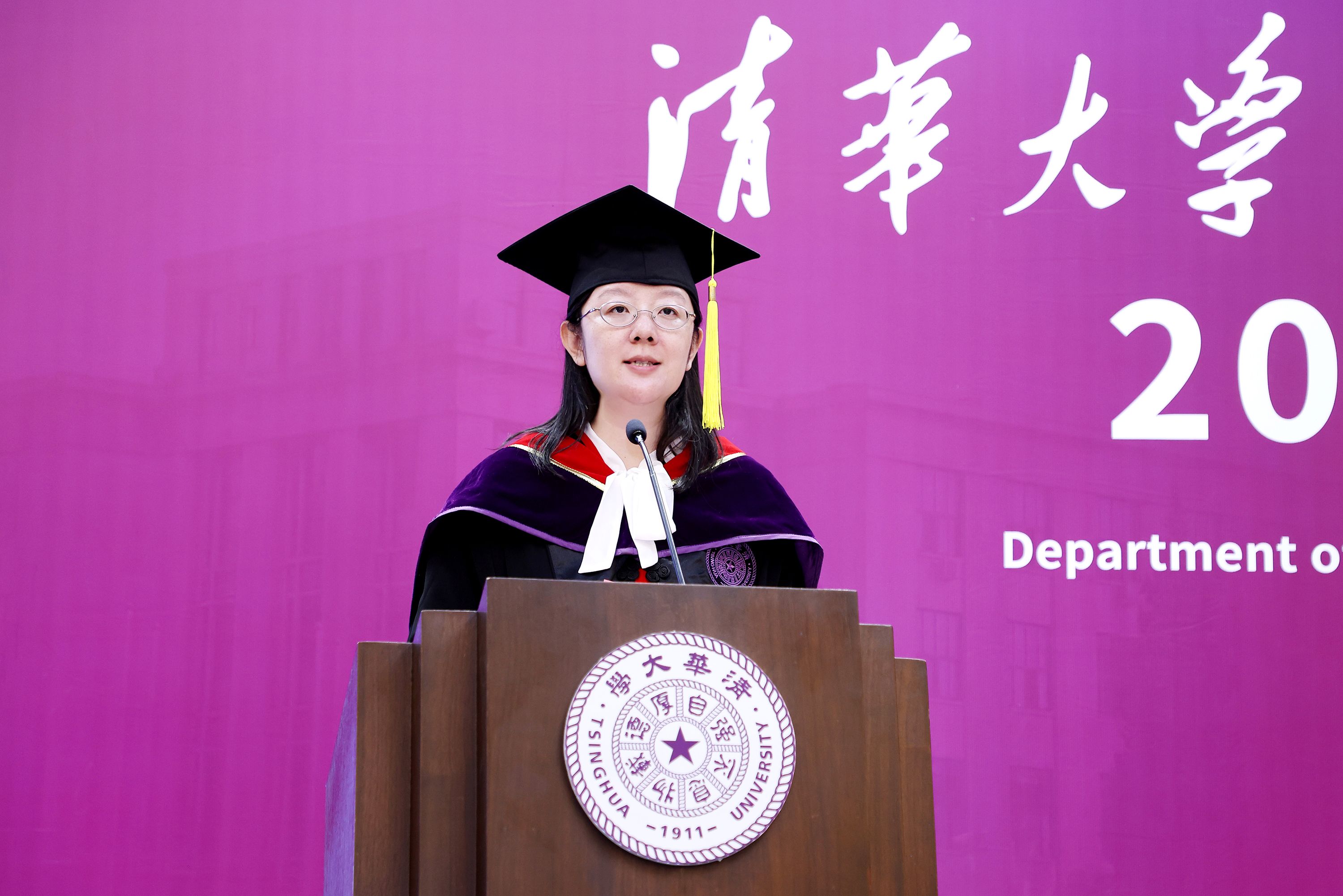 尹霞以“锐意进取 勇当国任”为主题作主题发言。她回顾了近年来计算机系师生共同经历的重大时刻,总结了计算机系学生在学习科研、文艺体育等方面取得的丰硕成绩,并向毕业生提出三点希望:一是锐意进取,成为科技创新的先锋者;二是担当国任,成为战略能力的建设者;三是勤学不辍,成为终身学习的实践者。在同学们即将启程之际,尹霞祝愿同学们前程似锦,不忘初心,以卓越的智慧和担当为民族复兴和人类进步贡献力量。