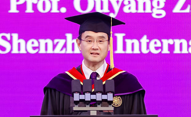 深圳国际研究生院院长欧阳证围绕“拥抱变化,定义未来”主题发表讲话。他首先代表深圳国际研究生院向2024届全体毕业生表示祝贺,向悉心培养学生的教职员工表示感谢。他表示,研究生毕业是立业和安家的开始,当今世界变化迅速,中国的经济也在转型,同学们应该潜下心来,做一些真正有可能改变世界、有高度、有难度的事情,重新定义“敢于坐冷板凳”。“把宝贵的时间放在别人不愿意踏入的空间,你会发现自己不知不觉站到了定义未来和创新的中心。”