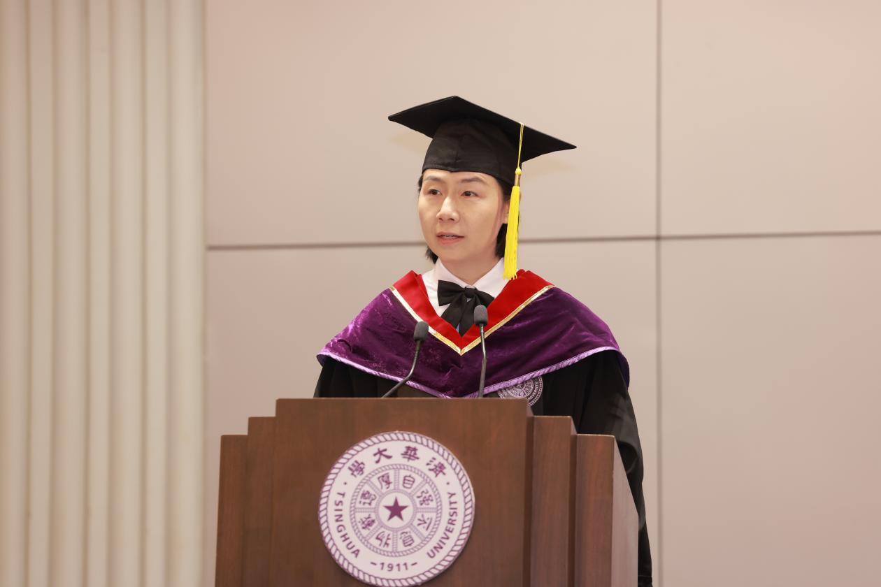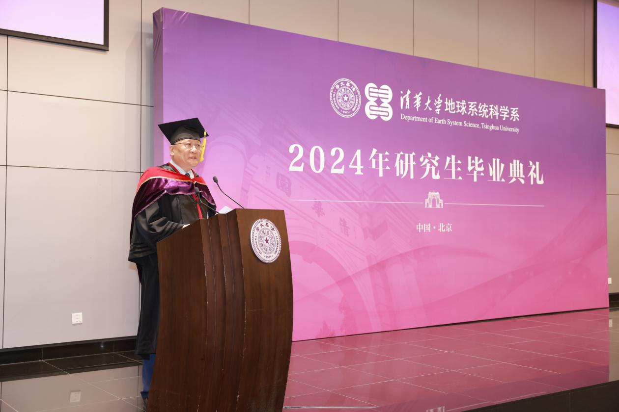 地学系教授徐冰作为导师代表致辞。她希望毕业生们能在未来科技变革的浪潮中施展自己的才华,成为真正的弄潮儿,成为国家的有志有识有用之才。她表示,当代社会面临巨大的挑战,这些都和地球系统科学息息相关,也是地学关注的焦点。在这样的背景下,要坚守追求真理、实事求是、独立的科学精神,并保持内心对科学对自然的热爱。“这份热爱是创新思维的源泉,是坚守真理、实事求是,保持独立精神的动力,也赋予了保持专注的定力,战胜挫折、从失败中重新崛起的勇气。”