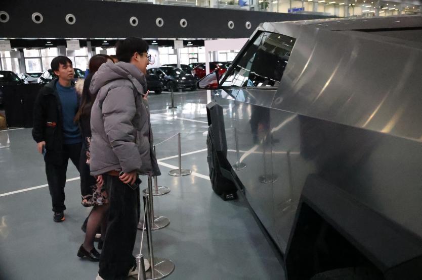 支队成员打卡特斯拉Cybertruck纯电动汽车