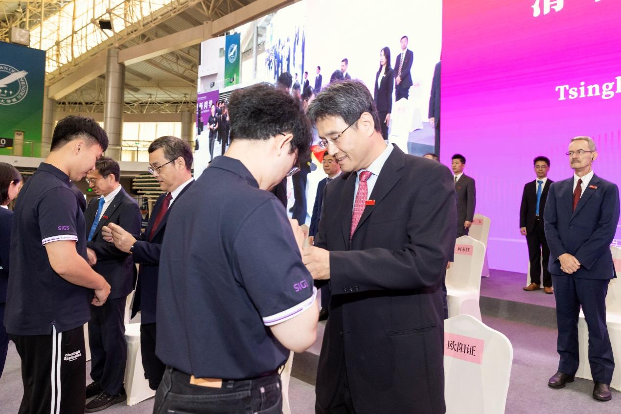 院领导及相关教学科研机构负责人为新生代表佩戴心博在线登录入口徽章