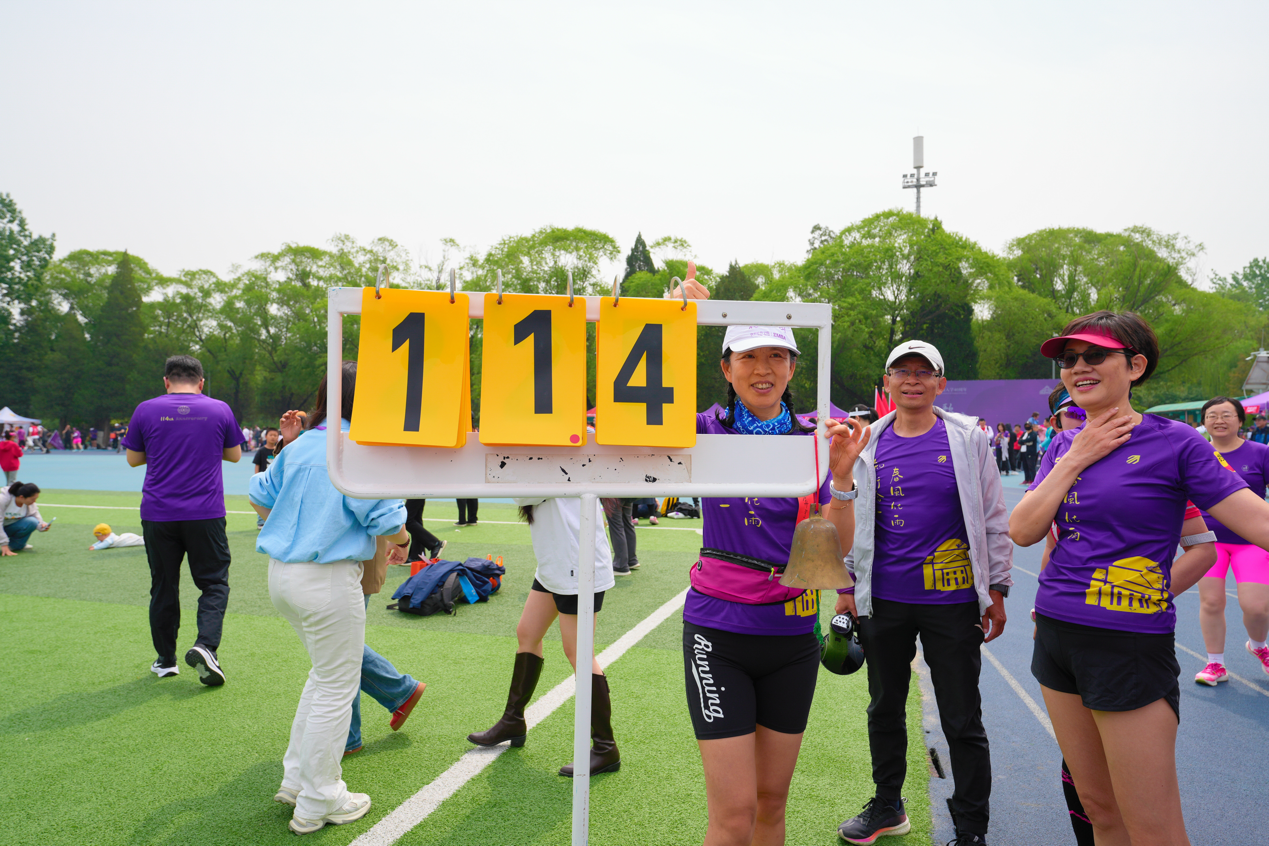 7点30分,发令枪响,重逢的欢声笑语暂停、跃动的身影步伐启动。标记圈数的计数牌上,数字的变换仿佛时间的流转,114年的青春接力,在师生校友们一次次向前奔跑的努力中展开。