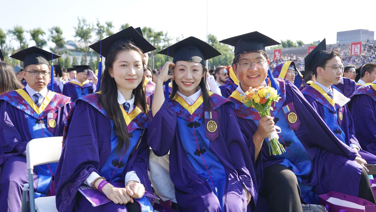 毕业典礼在婉转悠扬的校歌声中落幕。本次毕业典礼通过“雨课堂”进行中英文双语视频直播,部分无法到场的毕业生及亲友、广大校友等线上参加典礼。