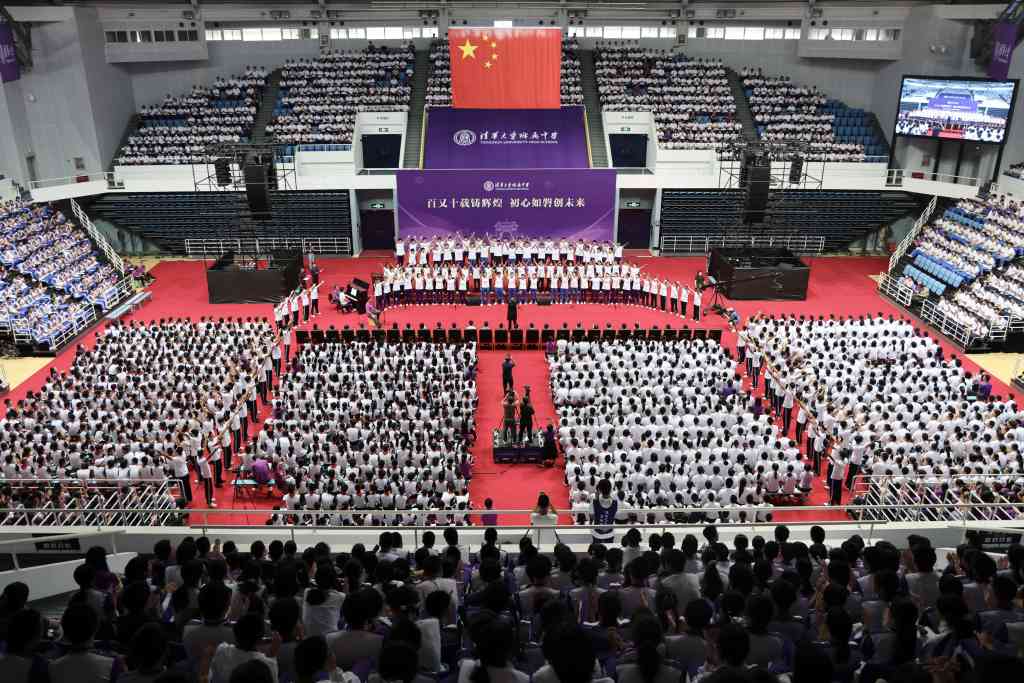 清华附中校长方妍带领全体师生回顾了附中110年校史,讲述成志学校(附中前身)抗战时期随校南迁、坚持办学的历程,希望师生们感念和平、胸怀家国,以创新进取应对时代变革,用优质资源武装自我,“幸福地奋斗、快乐地成长”,肩负起创造美好未来、建设现代化中国的责任。