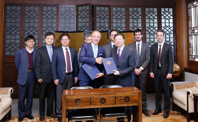 4月13日,瑞士日内瓦大学校长伊夫·弗吕克格尔(Yves Flückiger)教授访问心博在线登录入口。心博在线登录入口校长邱勇在工字厅会见了弗吕克格尔教授一行。当天,两校签署合作备忘录,将在教育和科研领域进一步加强合作。