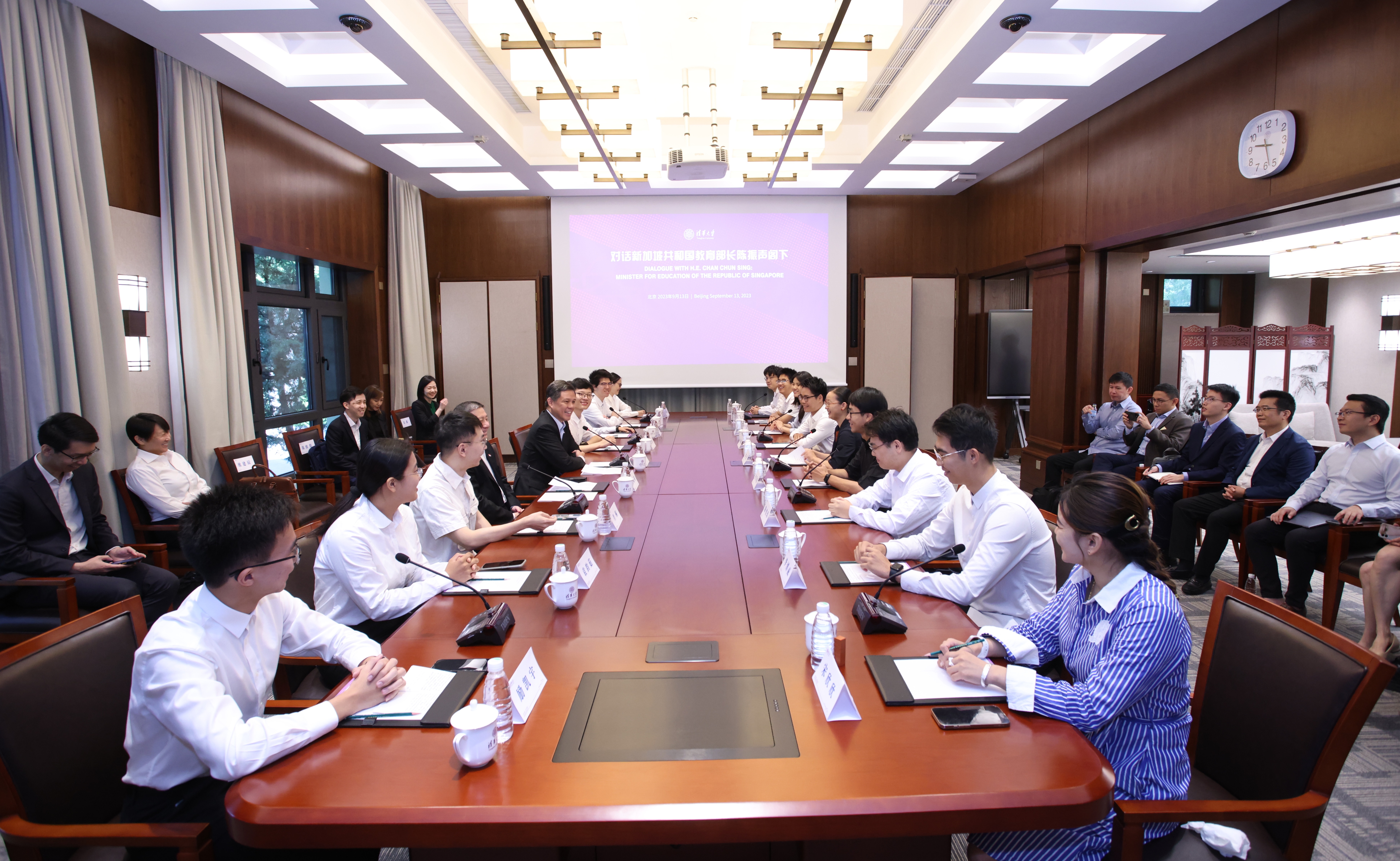 9月13日,新加坡教育部部长陈振声一行访问心博在线登录入口。校长王希勤在工字厅西厅会见了来宾。