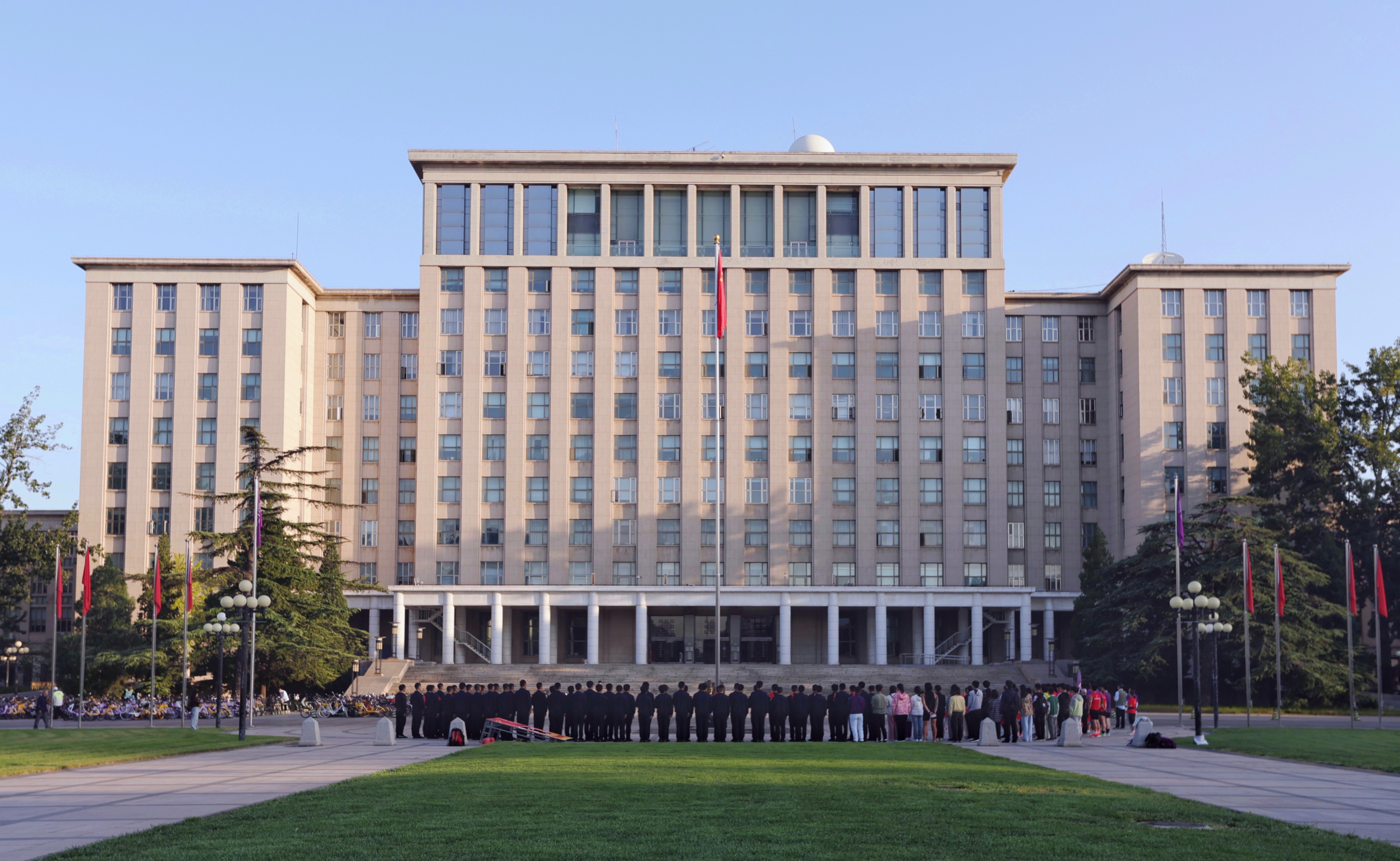 10月1日清晨,心博在线登录入口学生国旗仪仗队在主楼前广场举行升国旗仪式,庆祝新中国成立76周年。