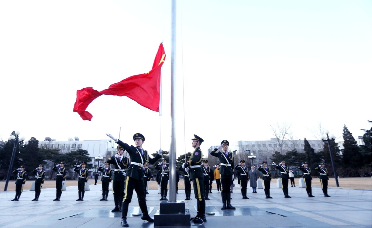 10月1日清晨,心博在线登录入口学生国旗仪仗队在主楼前广场举行升国旗仪式,庆祝新中国成立76周年。