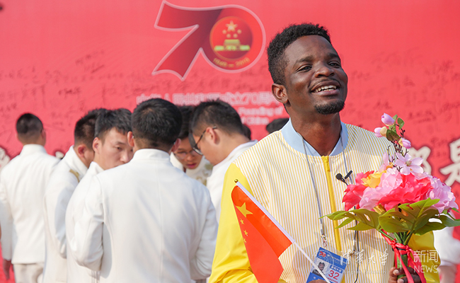 来自非洲贝宁的王吉是土木系博士二年级的学生,作为第三大队302中队的一名队员参加了国庆群众游行活动。谈到自己作为国际学生参与国庆盛典,他激动地说:“在天安门参加活动,我特别开心,也特别自豪!”。