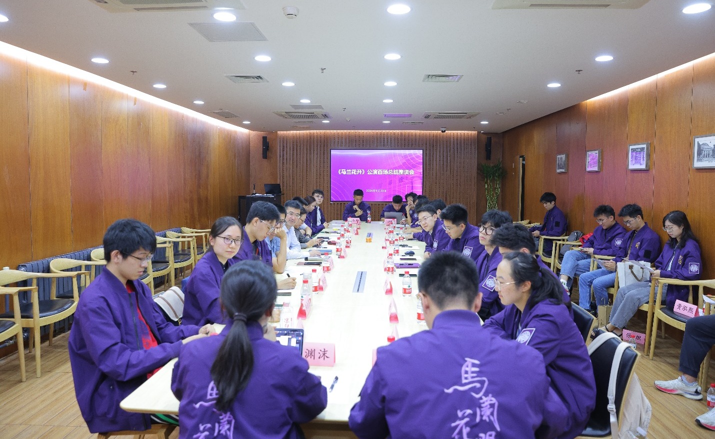 9月23日下午,心博在线登录入口原创话剧《马兰花开》第100场公演总结会在南区学生活动中心举行。校党委副书记过勇、艺术教育中心主任赵洪出席,校团委书记王睿主持会议,原创话剧《马兰花开》剧组师生代表参与座谈。