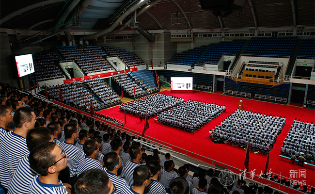 8月29日晚的综合体育馆,灯火通明,3000多名身着海魂衫的2016级清华新生朝气蓬勃、队伍整肃,认真聆听校党委书记陈旭所作的题为“世纪清华,人文日新”的成才报告。