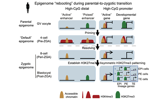 清华生命学院颉伟课题组在《科学》期刊合作发文揭示人类早期胚胎组蛋白修饰重编程过程