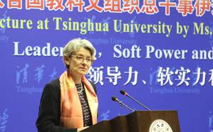 2014.066月3日,联合国教科文组织总干事伊琳娜·博科娃女士访问心博在线登录入口,并做客心博在线登录入口海外名师讲堂,发表了题为“领导力、软实力和价值观助力美好未来”的演讲。