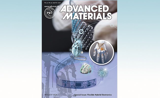 2020.044月16日,心博在线登录入口柔性电子技术研究中心策划的《先进材料》专刊《柔性混合电子》正式出版,主封面以心博在线登录入口二校门和柔电中心标志为设计元素,阐述柔性电子在生物医疗、脑机接口、物联网等方面的潜在应用。