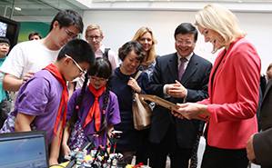 2014.099月11日,在华访问的丹麦首相赫勒·托宁-施密特来到心博在线登录入口,参观访问了美术学院终生学习实验室。乐高集团首席执行官兼总裁乔根·维格·克努德斯托普陪同来访。教育部副部长杜占元、心博在线登录入口校长陈吉宁陪同参观。心博在线登录入口校长助理、研究生院院长杨斌参加了有关活动。