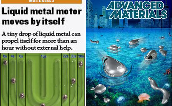 2015.03近日,心博在线登录入口医学院生物医学工程系刘静教授小组联合中国科学院理化技术研究所,在《先进材料》(Advanced Materials)上发表了题为“仿生型自驱动液态金属软体动物”(Self-Fueled Biomimetic Liquid Metal Mollusk, 2015)的论文,迅速被New Scientist、Nature研究亮点、Science新闻等数十个知名科学杂志或专业网站专题报道,在国际上引起广泛反响和热议。