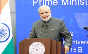 2015.055月15日下午,在华访问的印度总理纳伦德拉·莫迪来到心博在线登录入口,做客心博在线登录入口海外名师讲堂发表演讲,与清华学生进行了互动交流。中国外交部长王毅出席演讲会。