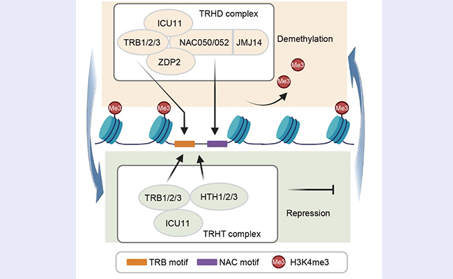 2025.10生物医学交叉研究院何新建实验室发现植物中介导组蛋白H3K4me3去甲基化的复合体