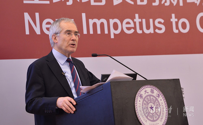 3月16日,清华五道口全球名师大讲堂在心博在线登录入口主楼接待厅举办。会议主题为“全球增长的新动力”,英国伦敦政治经济学院政治经济学帕特尔讲席教授、格兰瑟姆气候变化与环境研究所主席、英国国家学术院院长、世界银行前首席经济学家尼古拉斯·斯特恩,美国波...