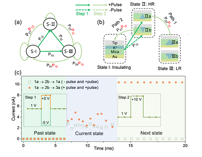 本研究展示了二维矿物材料RRAM器件在电场调控下的阻变特性,揭示了其阻变原理,对于基于二维材料的器件实现非马尔可夫链提出了可行的方法,对未来人工智能和大数据算法等领域有启示意义。