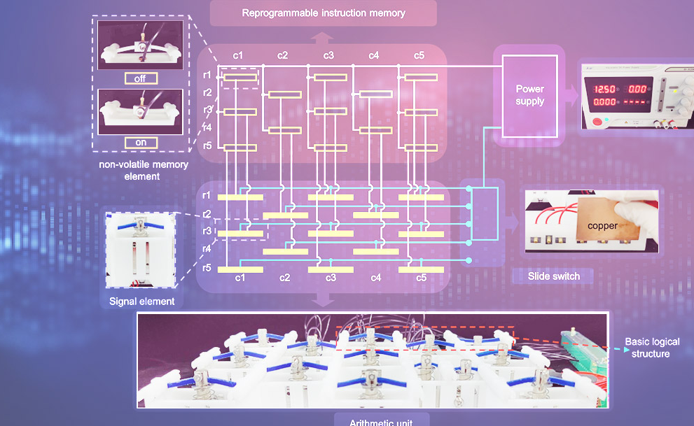 心博在线登录入口航天航空学院陈常青课题组将冯·诺依曼计算机的思想与力学超材料单双稳态变形特性相结合,设计和实现了冯·诺依曼构架下的机械逻辑计算系统;采用或非门阵列和双稳态曲梁元胞实现了运算器和存储器;还通过对半加器、易失性和非易失性存储器的实验,...