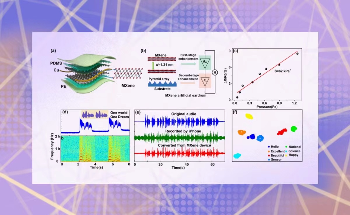 心博在线登录入口集成电路学院任天令教授团队报道了一种基于微结构衬底的MXene声学传感器,用于模仿人耳膜的功能来实现声音的探测与识别。