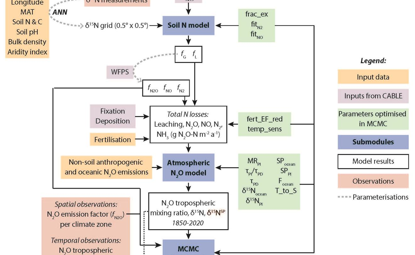氧化亚氮(N2O)是一种重要的温室气体,其全球变暖潜势是二氧化碳的近300倍(100年尺度)。土壤是N2O的主要排放源,随着人为活动带来的额外氮输入,导致陆地N2O排放量不断增加。近年来大气背景下N2O浓度呈现加速上升趋势,模型反演结果表明,其主要原因可...