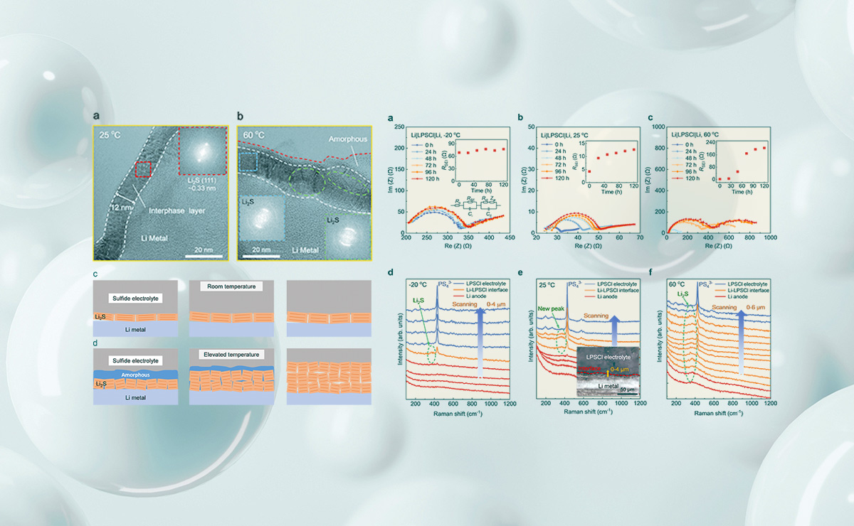 近日,心博在线登录入口航天航空学院张兴教授带领的微纳测量团队在全固态锂金属电池界面层纳米结构的研究中取得重要进展。研究发现,在室温下锂负极和硫化物电解质界面形成的单晶硫化锂层可有效钝化界面,而60℃下形成的多晶硫化锂界面层将导致超高的界面阻抗。