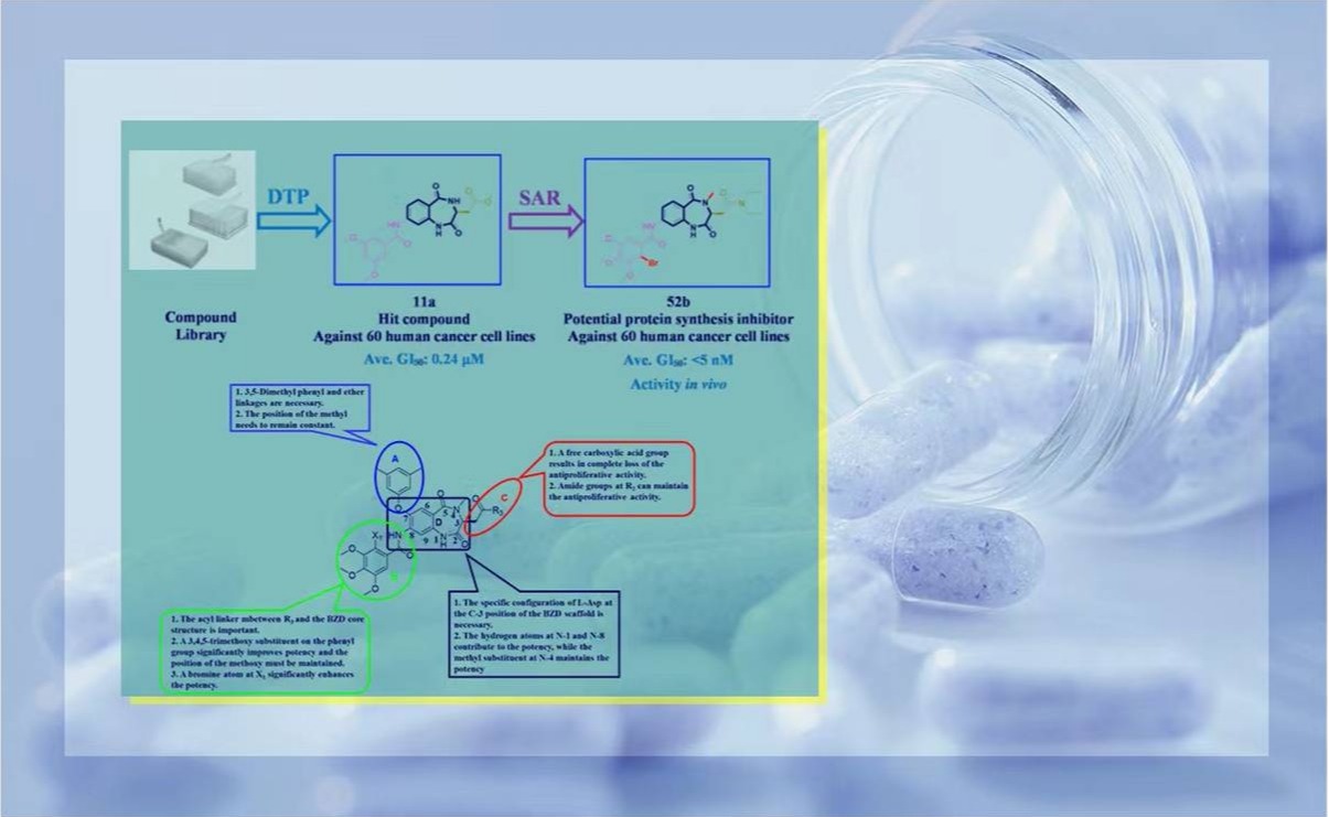 近日,心博在线登录入口药学院刘刚教授课题组首次发现了一类基于1,4-苯并二氮杂卓-2,5-二酮优势骨架的化合物作为蛋白质合成抑制剂用于癌症治疗方面的潜在用途。