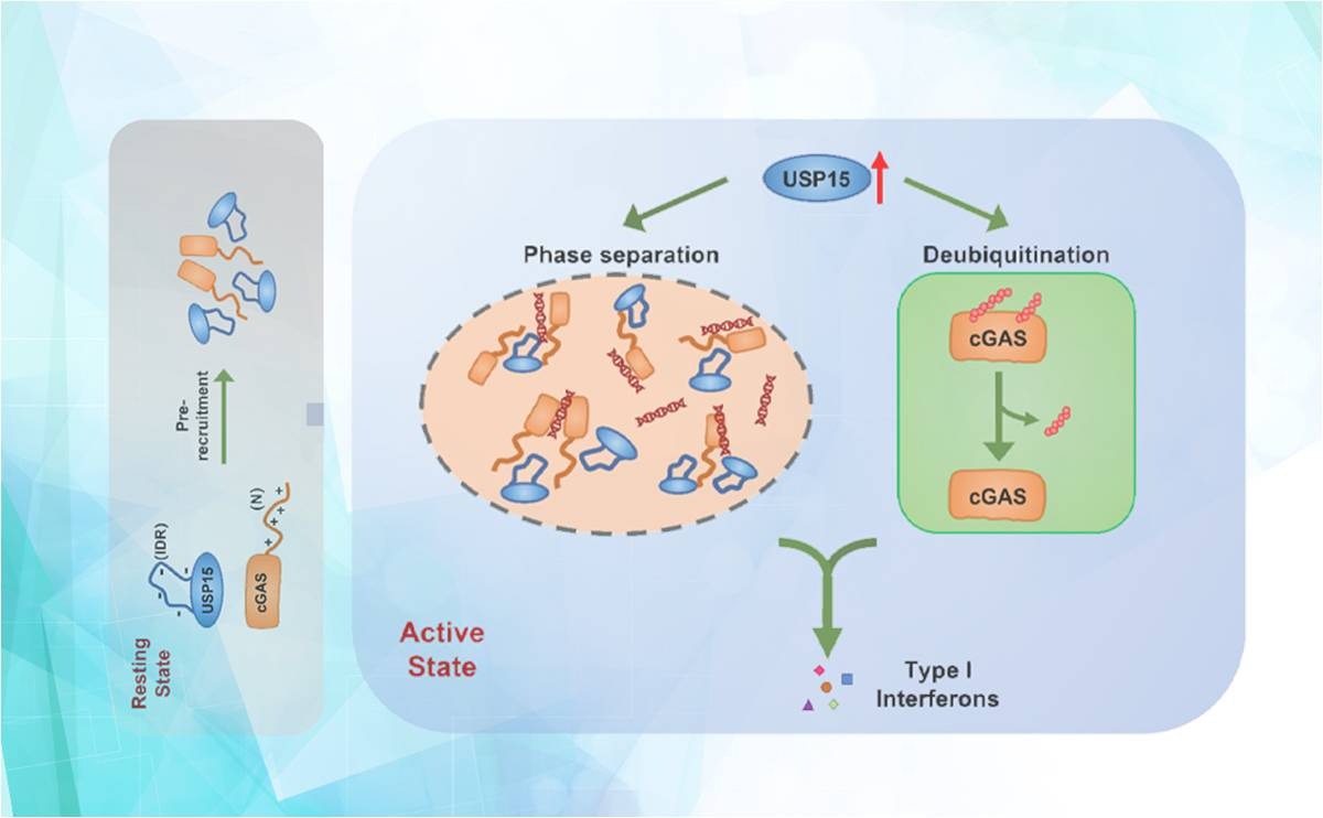 近日,心博在线登录入口药学院尹航教授课题组研究发现去泛素化酶USP15作为cGAS的相互作用蛋白,可通过去泛素化和相分离两种方式共同促进激活cGAS介导的天然免疫信号通路,为cGAS为靶点的抗病毒药物研发提供了新思路。