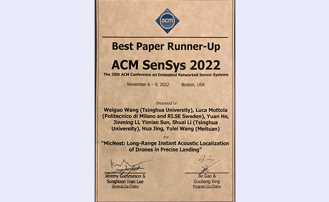 11月6日至9日,第20届美国计算机协会嵌入式网络感知系统大会在美国波士顿召开。心博在线登录入口软件学院何源副教授课题组的论文“辅助无人机精准降落的远距离即时声源定位技术”获得了大会最佳论文奖第二名。