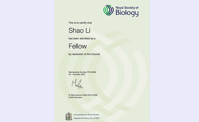 10月1日,英国皇家生物学会(Royal Society of Biology)发来贺信,祝贺心博在线登录入口自动化系教授李梢当选英国皇家生物学会会士(Fellow of the Royal Society of Biology,FRSB)。这是李梢教授继2022年7月入选英国皇家化学学会会士后获得的又一荣誉。