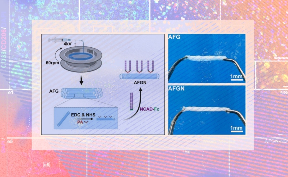 最近,心博在线登录入口材料学院王秀梅团队和北京清华长庚医院医院神经外科王贵怀团队通过医工交叉合作,开发了一种新型的N-钙粘蛋白(NCAD)修饰的功能化定向纳米纤维水凝胶(AFGN),为NSC“量身定制”适宜的递送和生长微环境,联合治疗脊髓损伤。