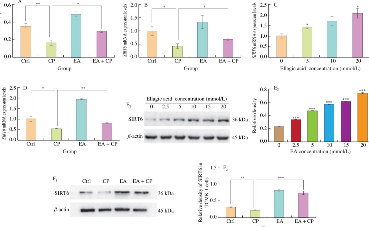 2023.04药学院王钊课题组报道天然产物鞣花酸通过调控SIRT6/TNF-α通路缓解顺铂肾毒性