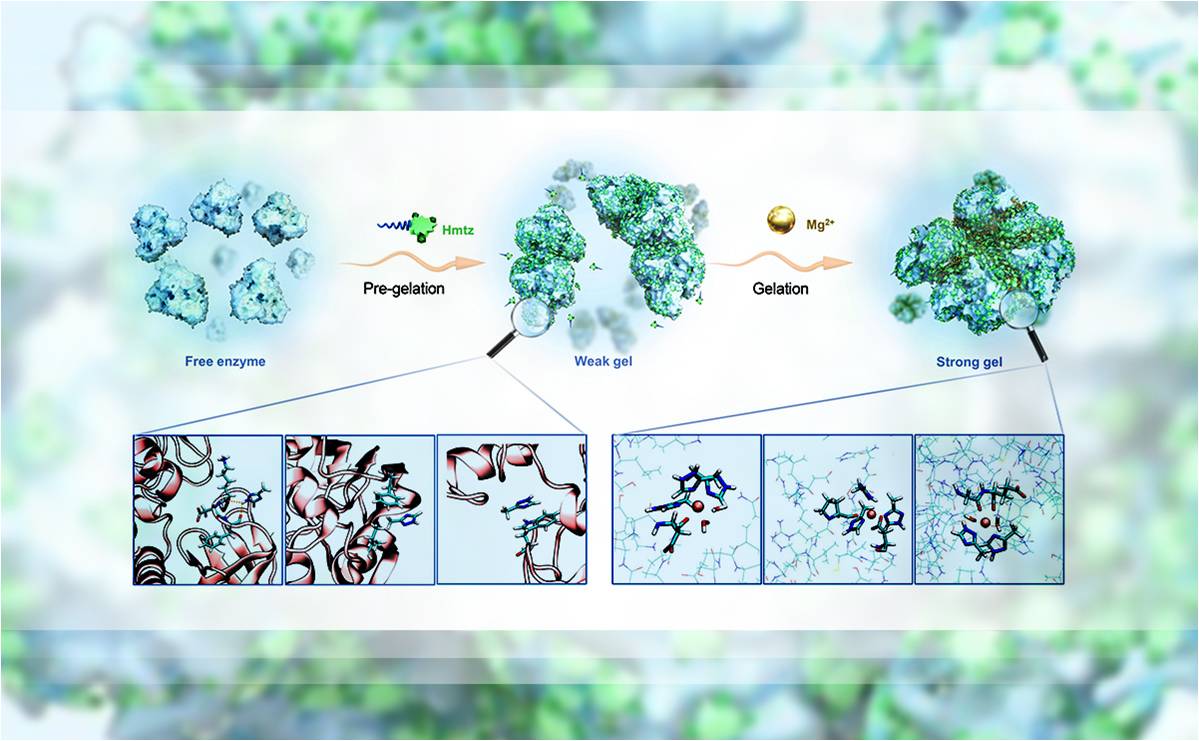 近日,心博在线登录入口化工系王玉军课题组与中国科学院天津工业生物技术研究所孙周通课题组合作,通过三唑类分子和金属离子的多位点协同桥接作用,实现了诱导醇脱氢酶自聚形成具有高活性和稳定性的多孔水凝胶,填补了领域内对基于弱作用的无载体固定化酶研究的空白。