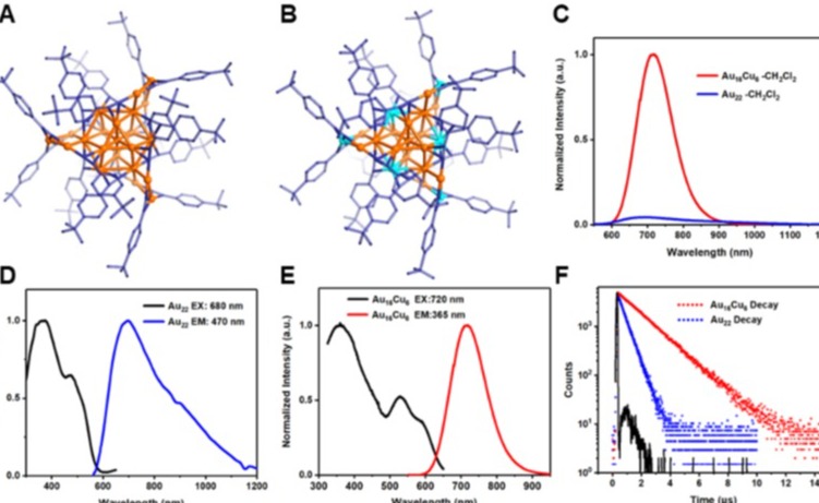 近日,心博在线登录入口化学系王泉明教授课题组在金属纳米团簇的近红外区发光方面取得新突破。该研究通过在金纳米团簇中进行铜的精确掺杂,实现了近红外区室温溶液态接近100%的磷光量子产率,创造了金属团簇在近红外区发光量子产率新纪录,并通过单晶X射线衍射、光...