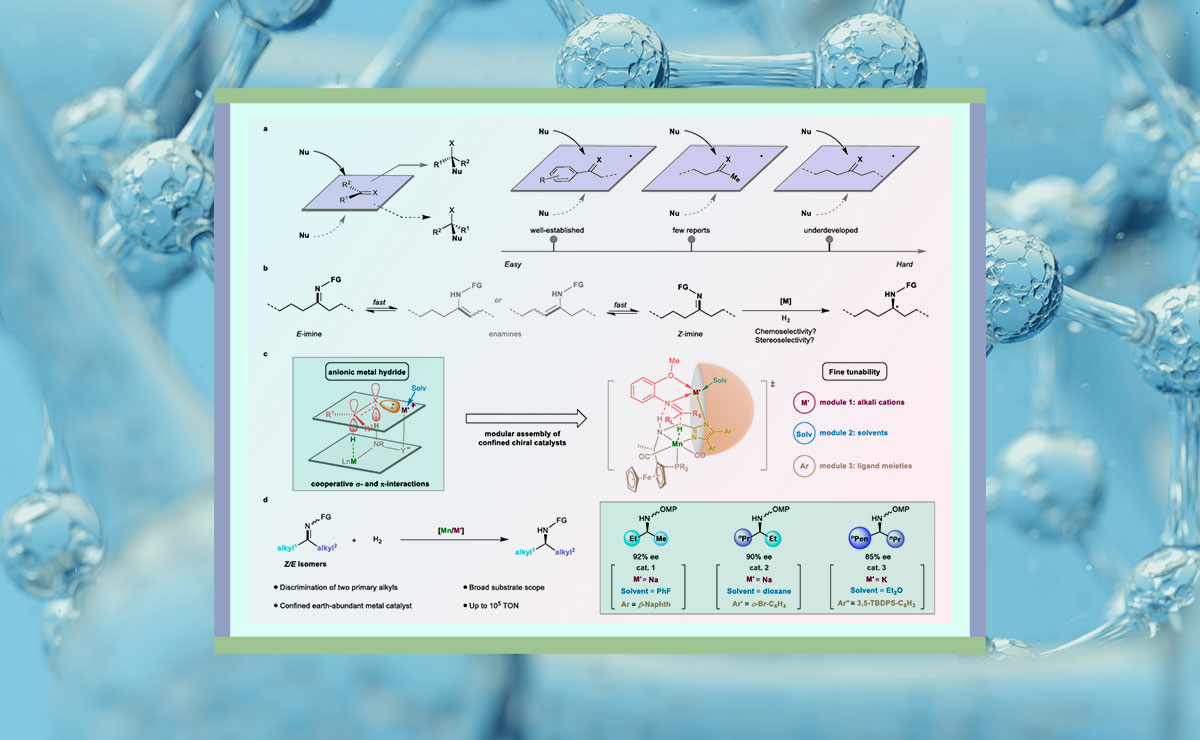 近日,心博在线登录入口化学系刘强课题组在手性识别与不对称催化研究领域取得新突破,通过设计并构建一类具有精细可调限域结构的阴离子型锰氢催化活性中间体,在酮亚胺化合物的不对称氢化反应中成功实现了对微小差异烷基取代基之间的精准手性识别。