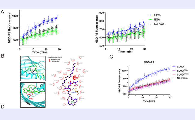 心博在线登录入口生物医学交叉研究院王涛实验室探究了不同磷脂缺失对线粒体形态结构的影响,发现磷脂酰丝氨酸和磷脂酰乙醇胺对于线粒体基本形态结构维持的重要性。通过遗传学筛选鉴定到了SLMO蛋白定位在线粒体内外膜之间,并且具有转运磷脂酰丝氨酸的能力, 这个功...