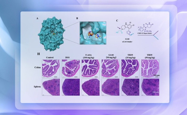 近日,心博在线登录入口药学院尹航课题组研究报道了首个CRBN介导的cGAS降解剂TH35,并探究其在溃疡性结肠炎(UC)模型中的治疗潜力,证明了cGAS靶向降解策略在安全性和有效性上相较于抑制剂的显著性优势。