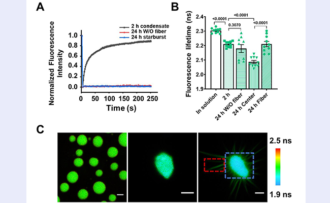 3月31日,心博在线登录入口生命学院陈春来课题组在《物理化学快报》发表题为“利用荧光蛋白的荧光寿命探究FUS凝聚体的形成及液-固相变”的研究论文,成功建立了一种基于荧光蛋白荧光寿命的检测方法,实现了对FUS凝聚体从液态转变为固态过程中内部流动性的实时动态...